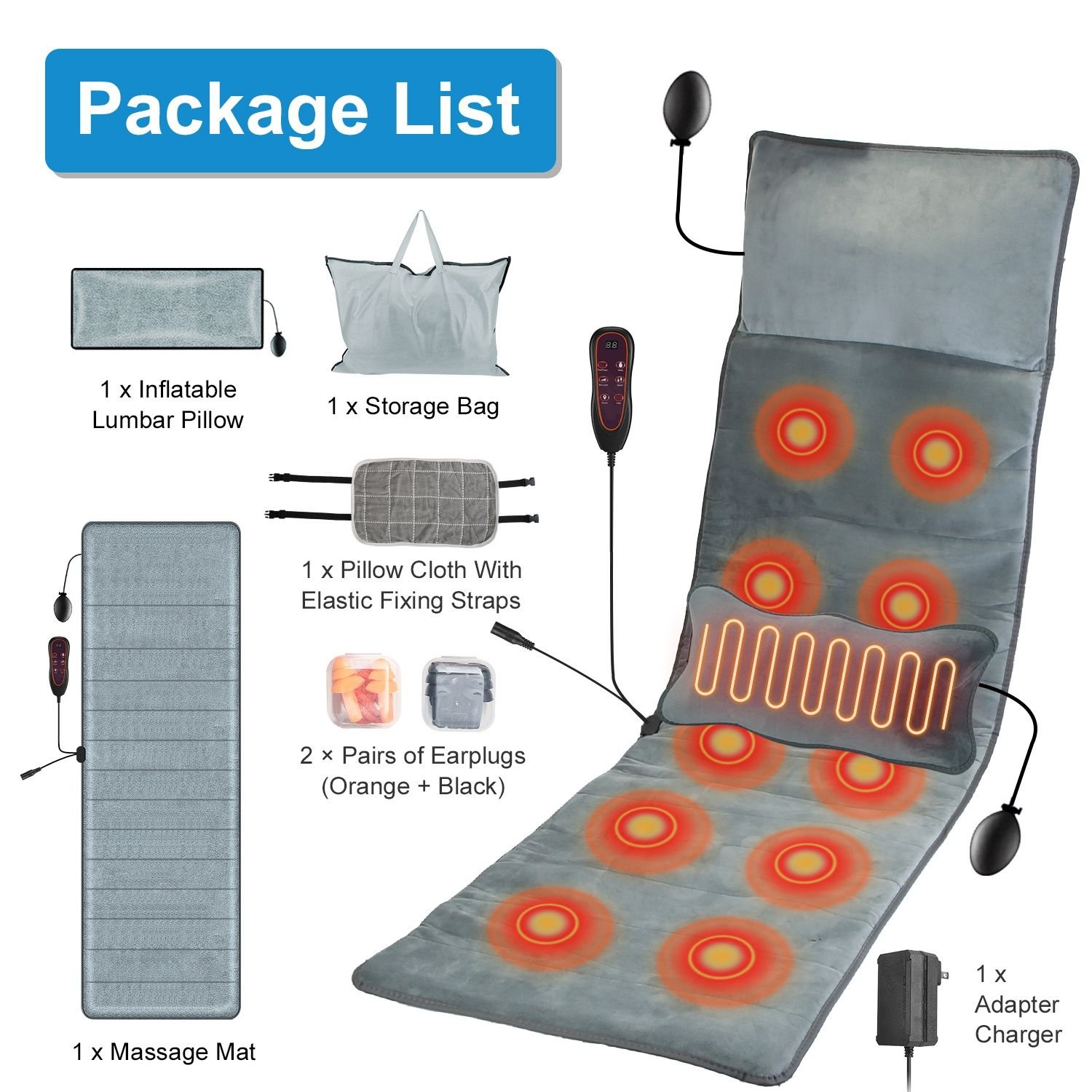 *Smart Timer & Perfect Gift*:The massage pad adopts auto(10mins)/20mins/30mins timer to let you customize you massaging time,caring for your safety and health and preventing injury due to overuse. Ideal for use at home or in the office. A perfect gift for your grandparents,parents,spouse,or friends on Mother’s Day,Father’s Day,or their birthday. Plus:If you feel noisy when massaging,you can use our included earplugs.