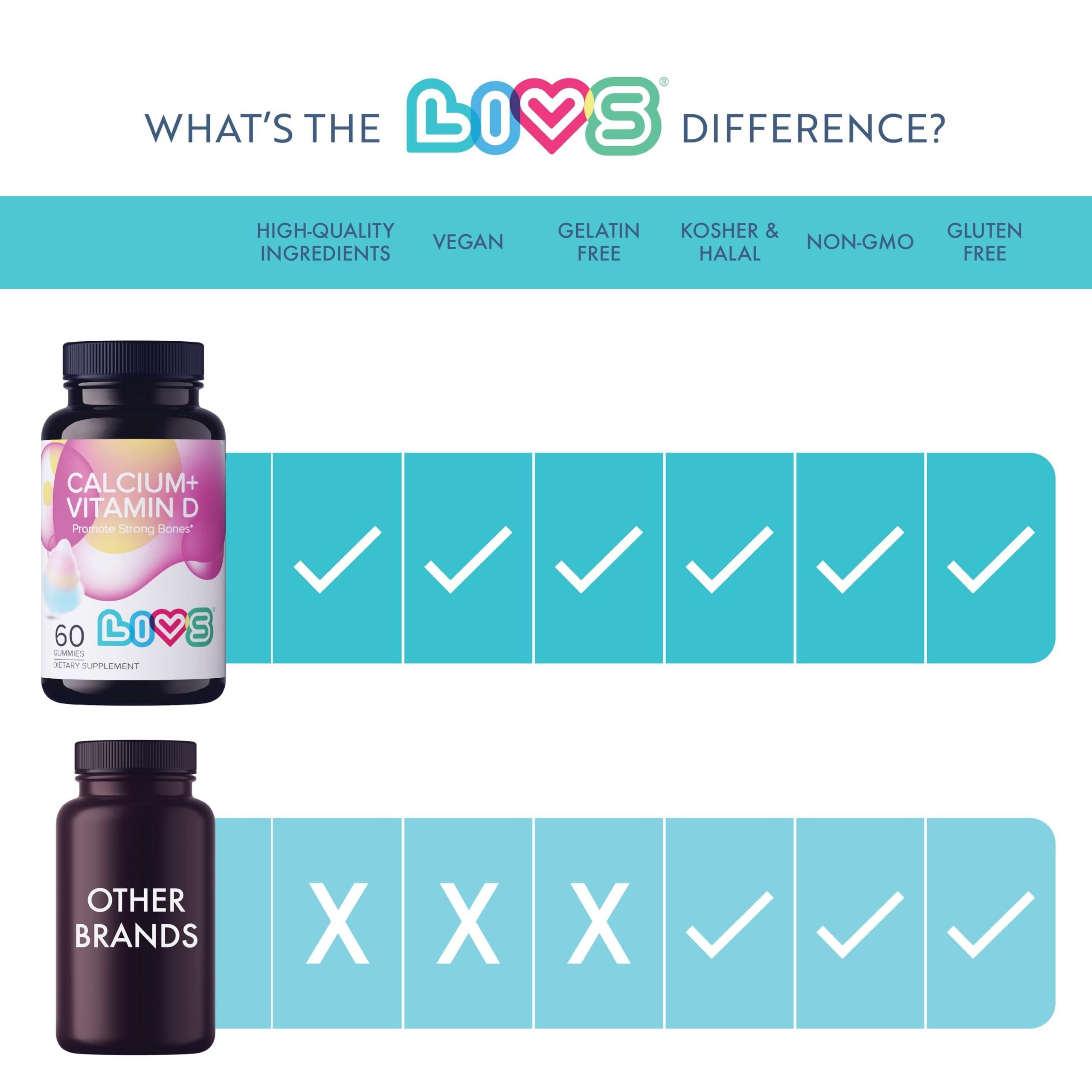 2.calcium and vitamin d supplement - these gummies may support overall bone strength & can aid in the movement of muscles. calcium & vitamin d are a great combination to help reach your health goals!