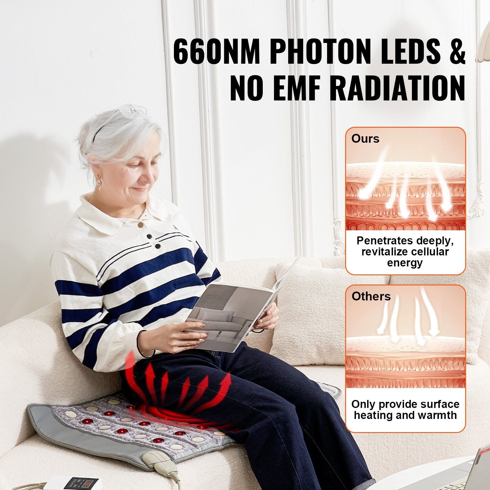 3.Enhanced Safety: Built with carbon fiber heating wire, this heated gemstones therapy mat evenly emits far infrared rays that penetrate deeply into muscle layers to relieve fatigue. Free from harmful EMF radiation, it provides peace of mind and safe use, promoting a healthier and more relaxing therapeutic effect.