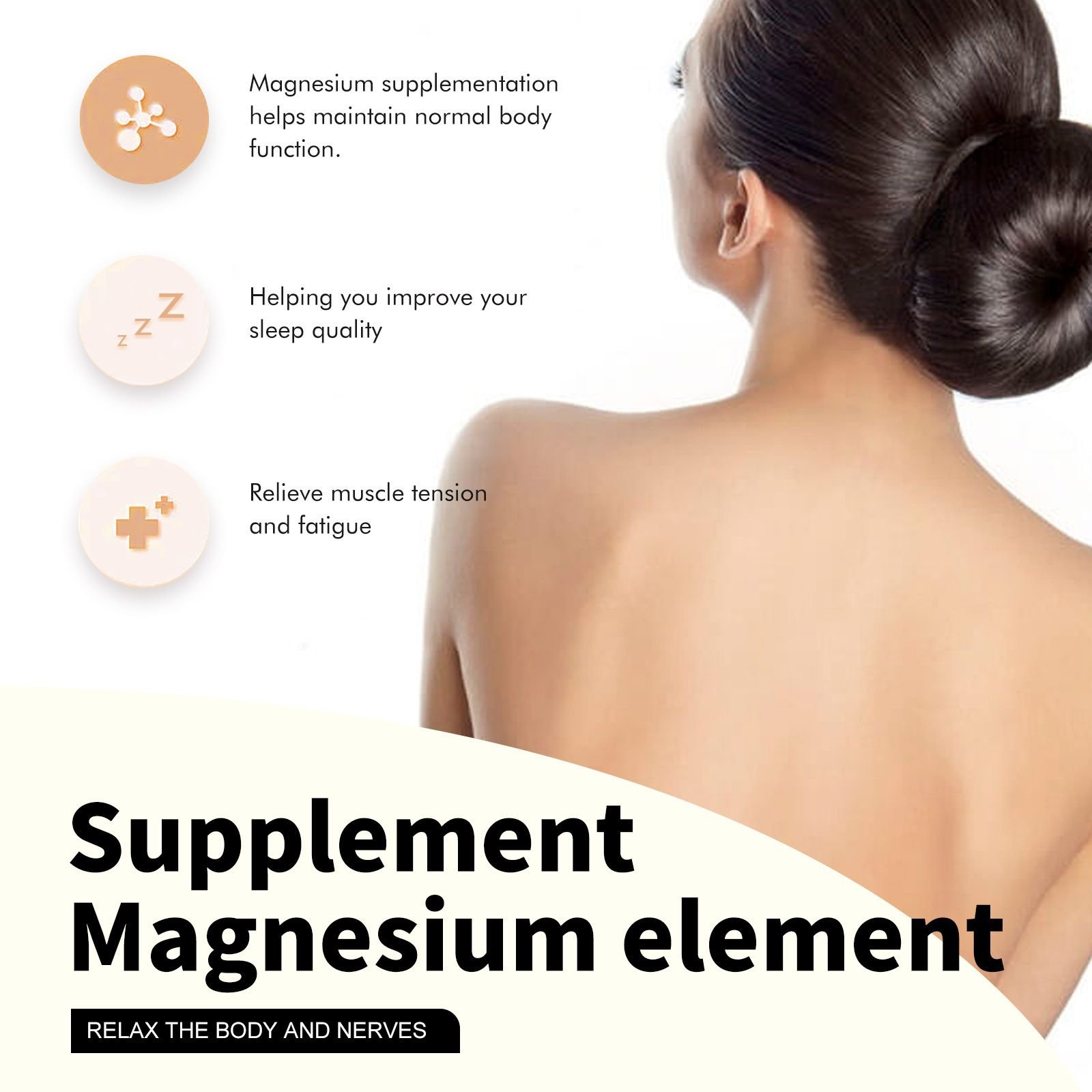 Supplement Magnesium element CAN RELAXTHE BODYAND NERVES.